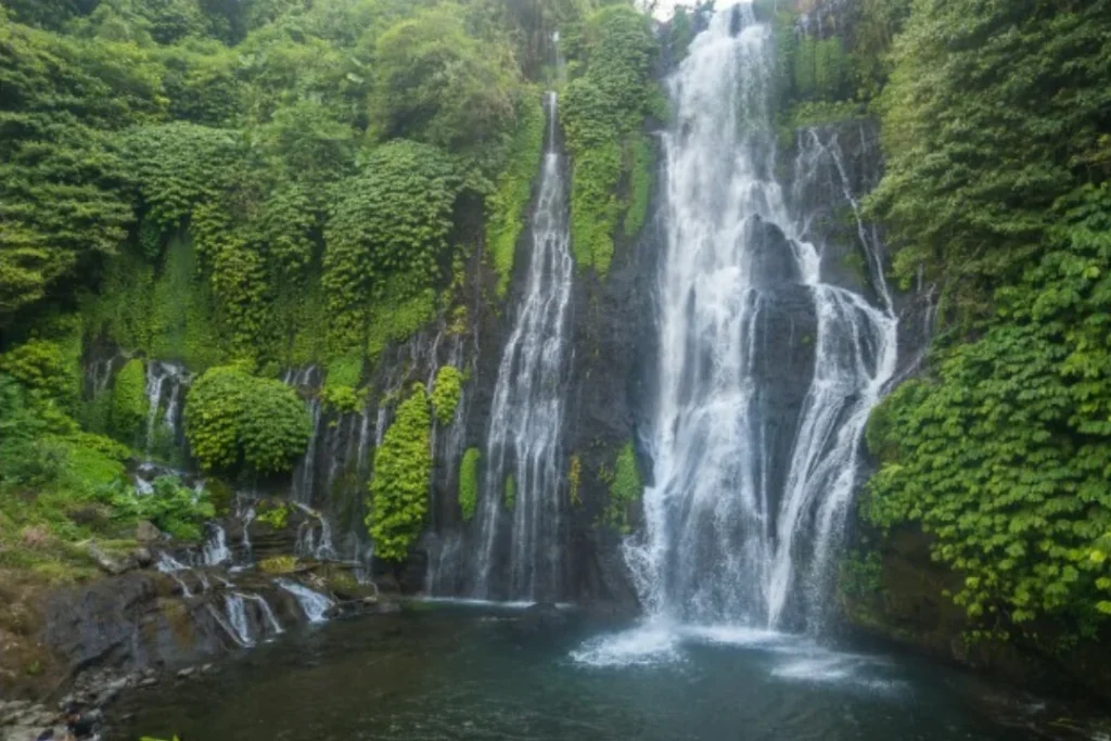 Banyumala Waterfall is a hidden gem amidst the lush forests of Buleleng Regency, Bali. Unlike most waterfalls, Banyumala offers a unique experience, with two streams merging from a height, creating a truly enchanting sight. The crystal-clear water flows swiftly over black rocks before flowing into a natural turquoise pool. The sound of trickling water and chirping birds create a calming natural symphony.